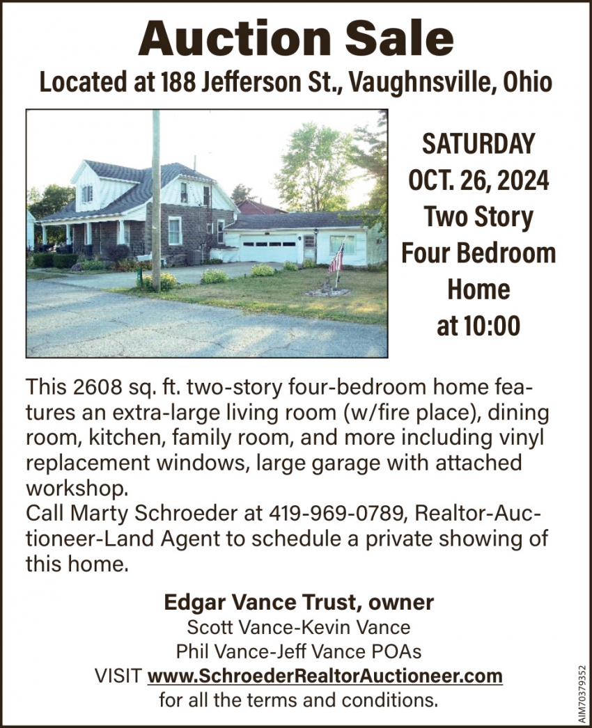 Oct 05, 2024. 188 Jefferson St - Vaughnsville Auctions Ads from The Lima News