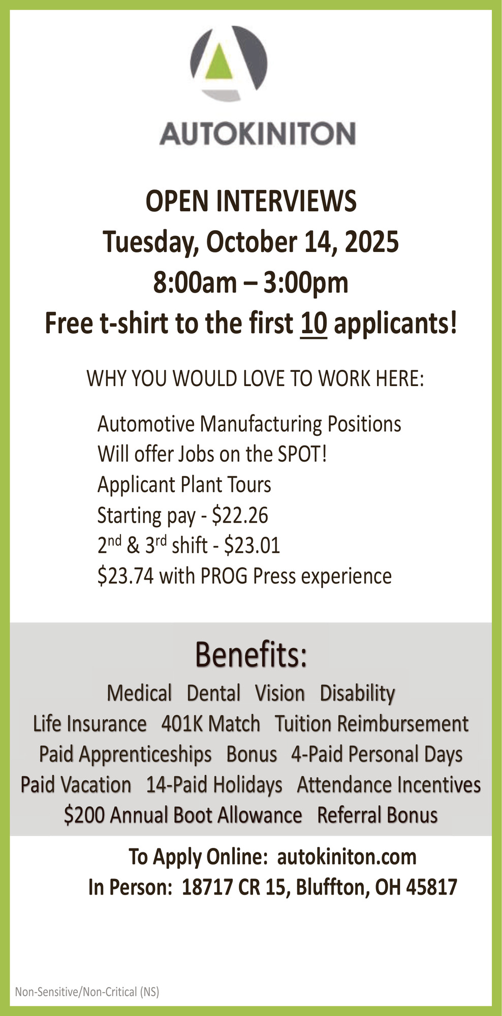 Oct 11, 2025. Autokiniton Jobs Ads from The Lima News