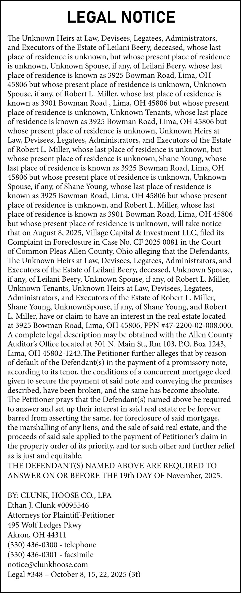 Oct 08, 2025. Clunk Hoose Co Public Notice Ads from The Lima News