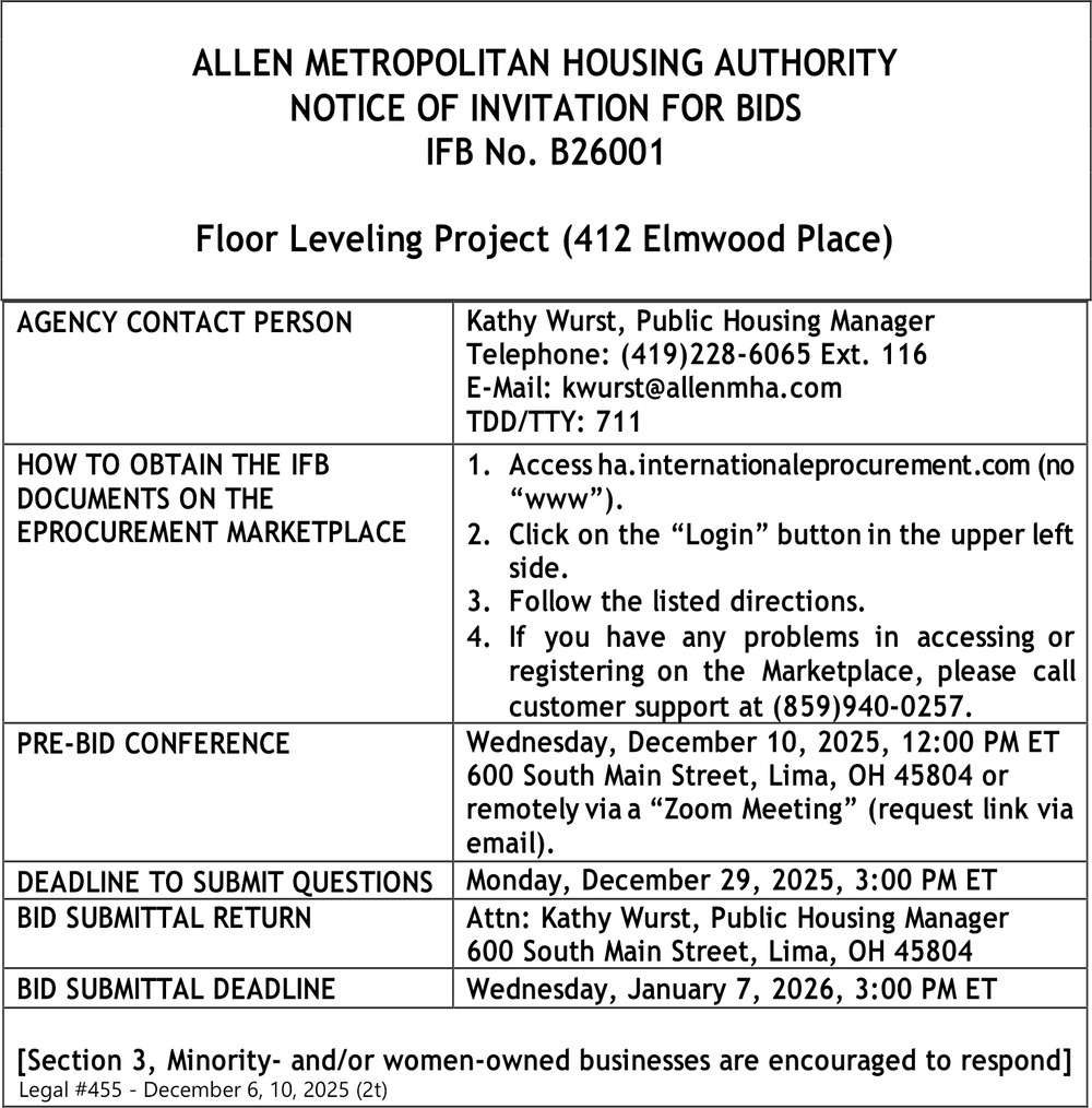 Dec 06, 2025. Allen Metropolitan Housing Authority Government Ads from The Lima News