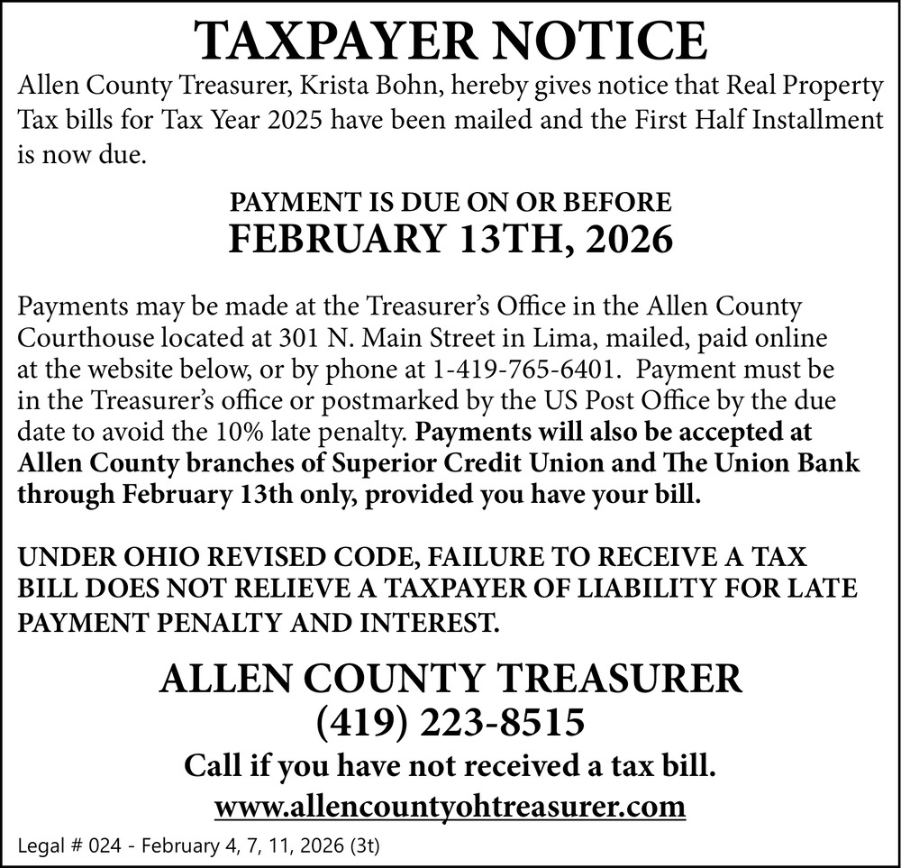 Feb 04, 2026. Allen County Treasurer Public Notice Ads from The Lima News