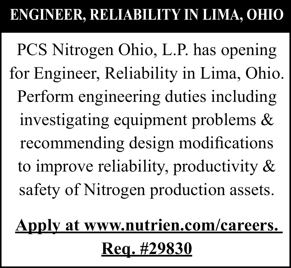 Feb 28, 2026. Nutrien Jobs Ads from The Lima News