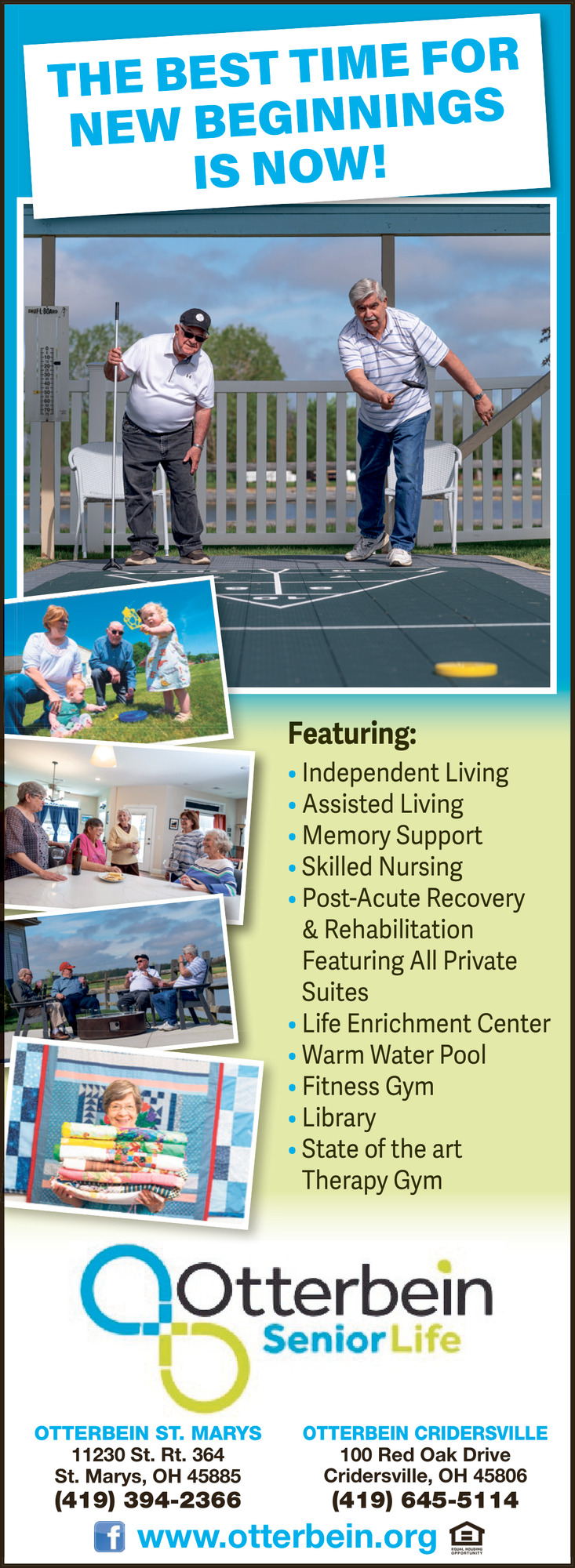 Apr 30, 2026. Otterbein Senior Life - Cridersville, St. Marys Senior Living Ads from The Lima News